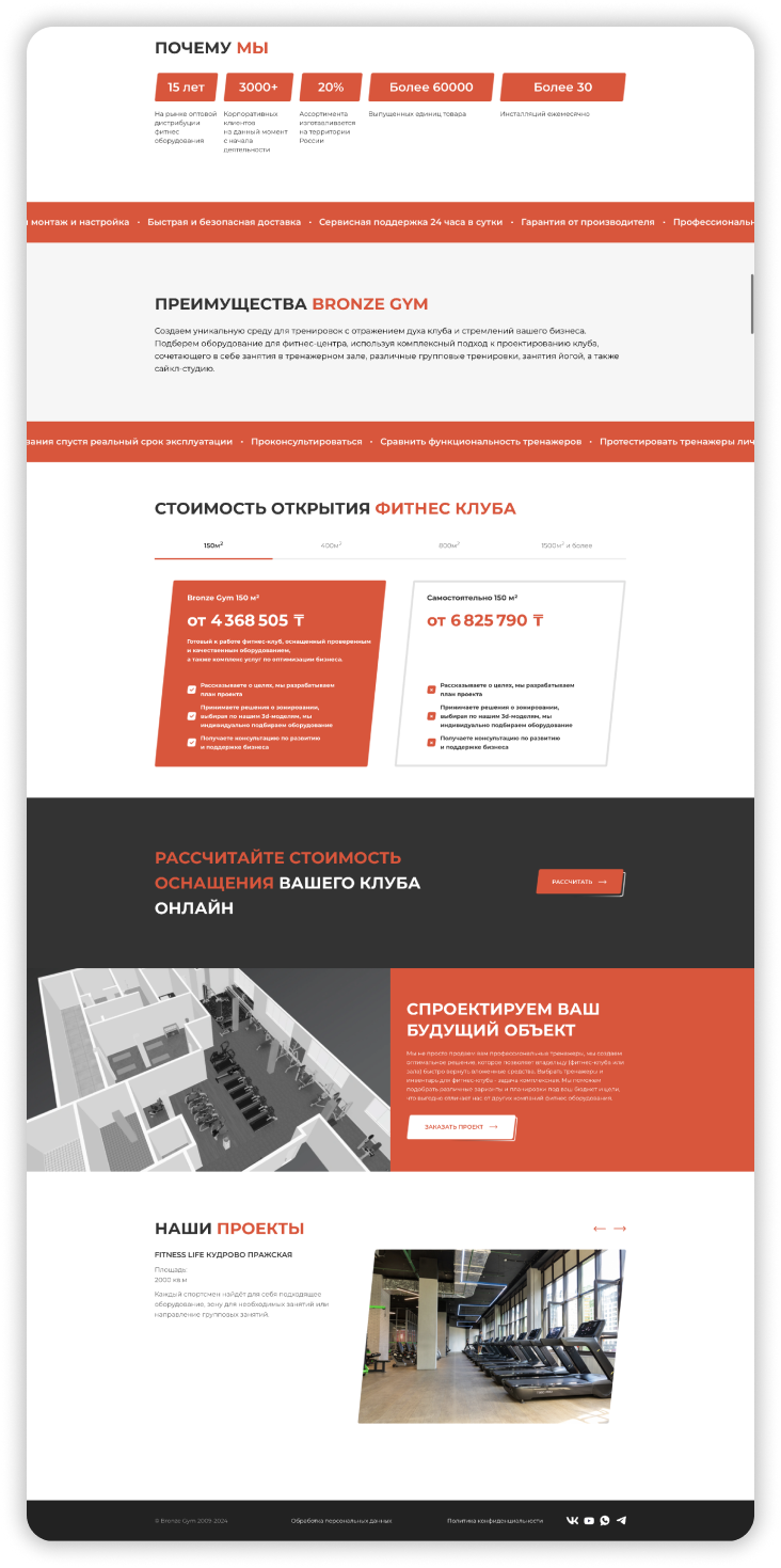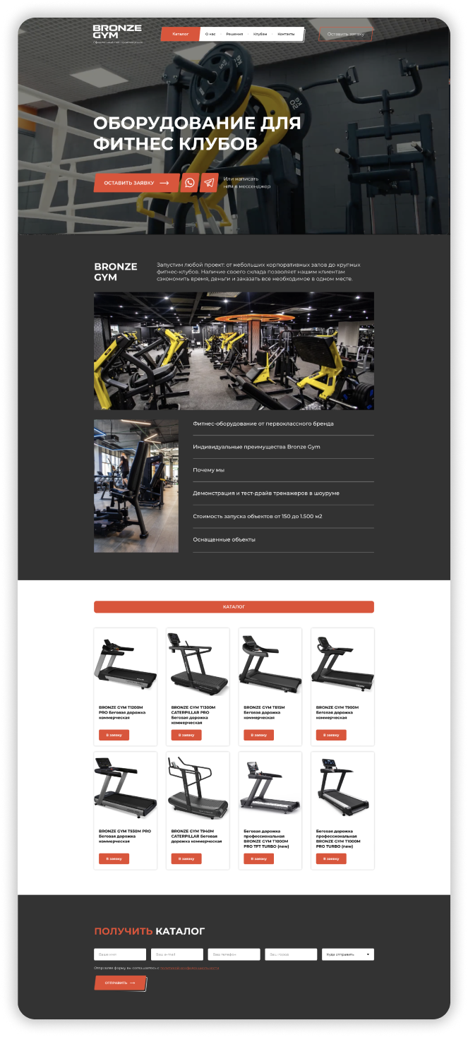 Сайт для компании, специализирующейся на тренажерах, должен быть функциональным, стильным и удобным. Он станет идеальной платформой для представления продукции и привлечения клиентов. Сайт должен быть современным, с минималистичным дизайном, отображать ваш профессионализм и вдохновлять на выбор лучших решений для создания идеального спортзала.